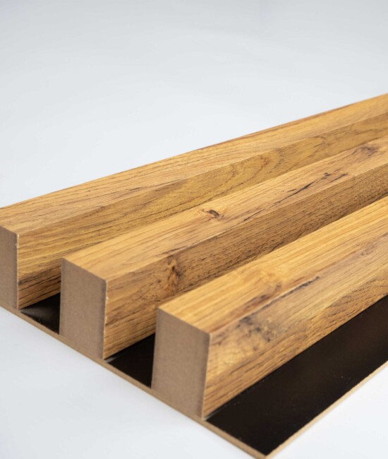Jeden panel składa się z czarnej płyty HDF oraz 3 sztuk lameli ściennych premium.